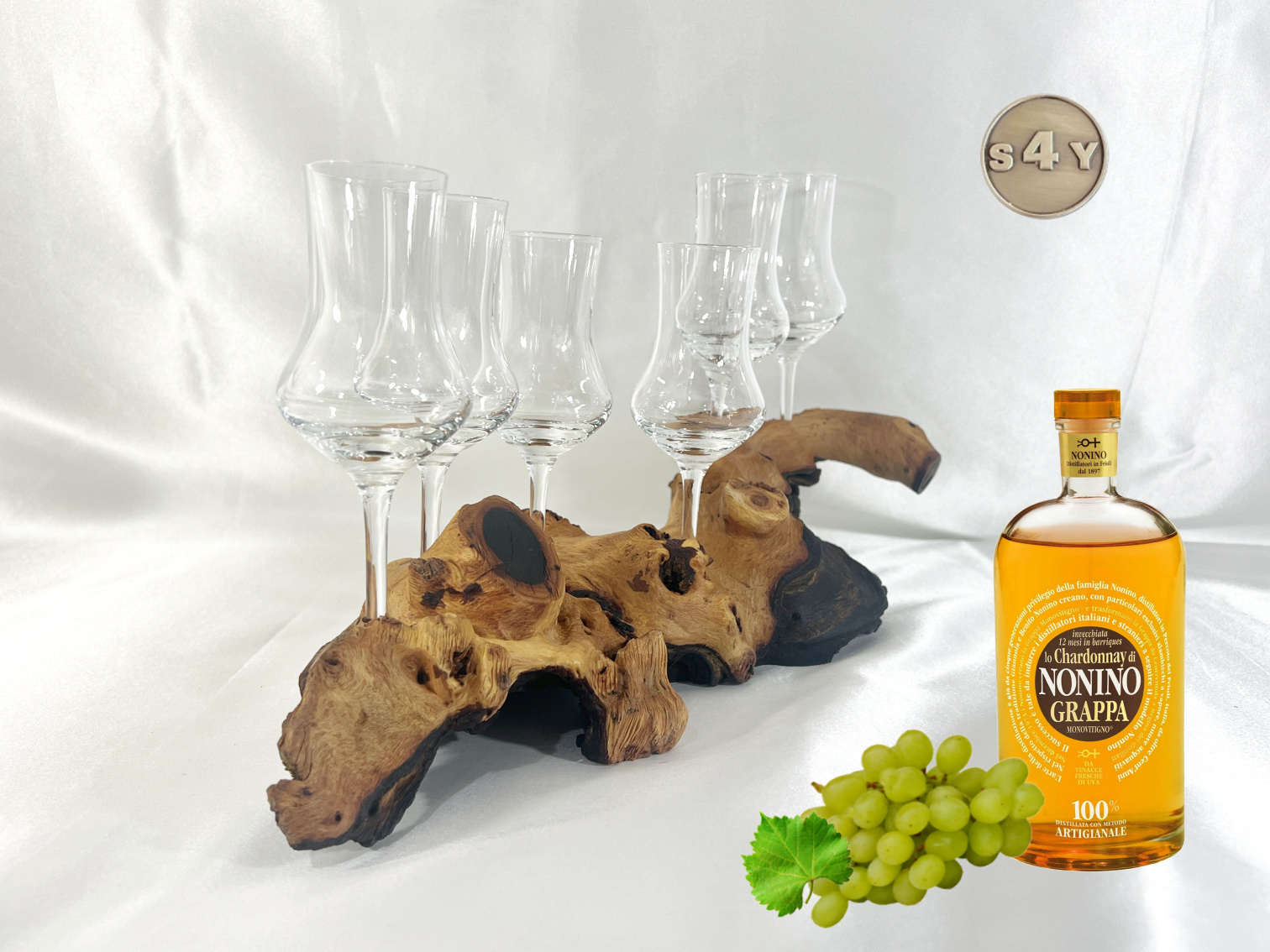 Diese Art ist ein brillantes und sehr transparentes Kolbenglas, um die Farbe und den ursprünglichen Farbton von Grappa, Schnaps, Likör, Wodka, klare Obstbrände, Tresterbrände, Marc, Gin und Aquavit zu würdigen.