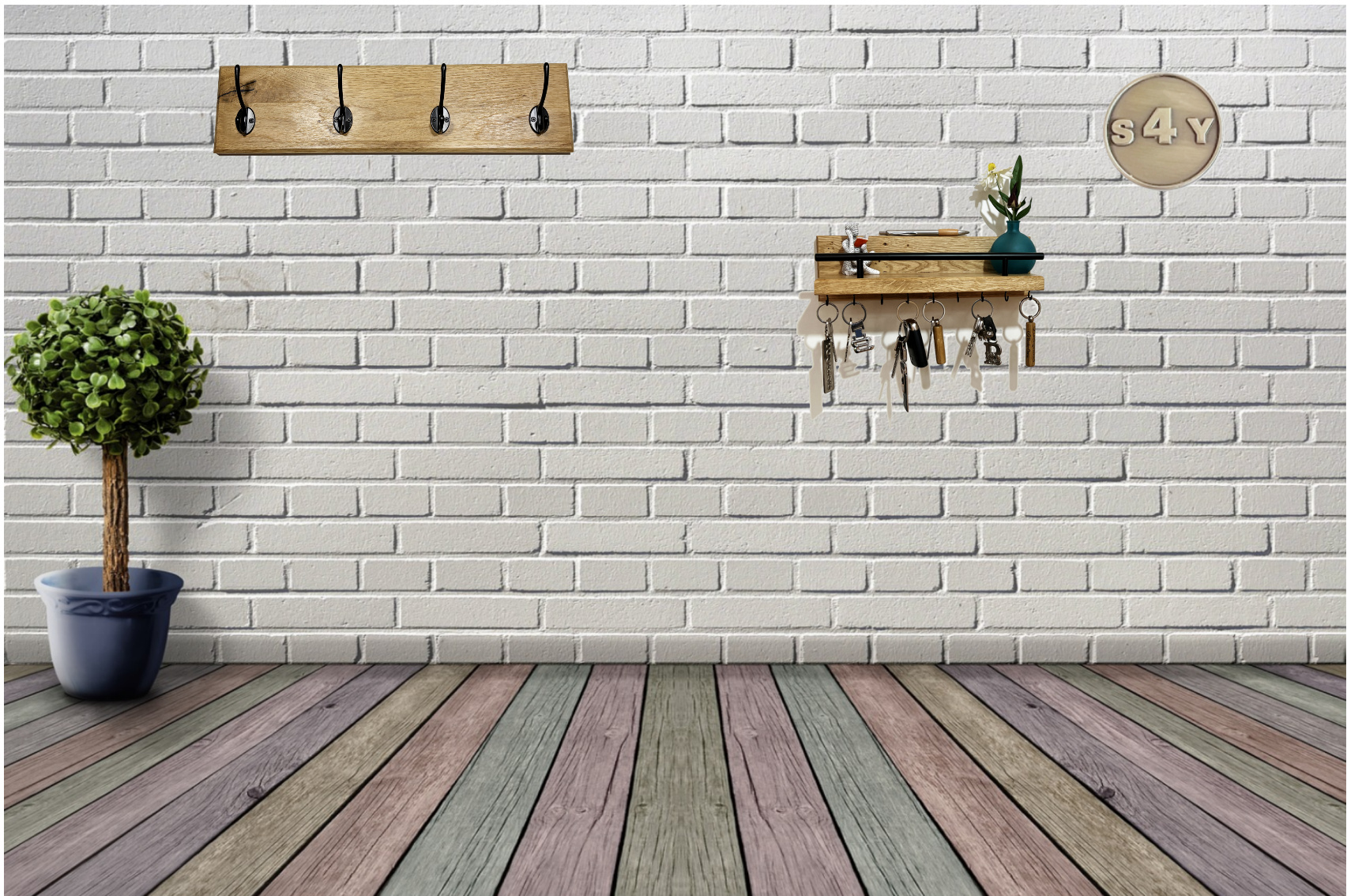 Dieses moderne, rustikale Schlüsselbrett mit Ablage und schwarzem Briefhalter sorgt für Ordnung und ist gleichzeitig ein echter Hingucker in deinem Haus oder in der Wohnung! Die Zeit, in der du morgens verzweifelt auf der Suche nach deinen Schlüsseln durch die Wohnung gelaufen bist, gehört nun der Vergangenheit an! Es ist einfach perfekt, um deinen Eingangsbereich zu organisieren. Das massive Schlüsselbrett ist aus hochwertigem, rustikalem Eichenmassivholz hergestellt und besticht durch seine außergewöhnliche Art und Holzmaserung, aber hat auch gleichzeitig ein besonderes Design. (((Jedes Schlüsselbrett ist ein UNIKAT))) An der Unterseite des Regalbretts befinden sich die schwarzen Haken (vormontiert), dort können die Schlüssel sauber nebeneinander aufgehängt werden. Die Oberseite des Schlüsselbretts ermöglicht die Ablage von Gegenständen (Smartphone, Geldbörse, Kleingeld, Briefe, Postkarten, Deko etc.). Bei dieser Schlüsselbrettvariante ist die Breite der Ablage ausreichend groß dimensioniert, um darauf auch ein Smartphone ablegen zu können. Durch das besondere Finish mit Wachs und Öl wird die Maserung des Eichenholzes nochmal betont und verleiht dem Schlüsselbrett ein edles Aussehen.