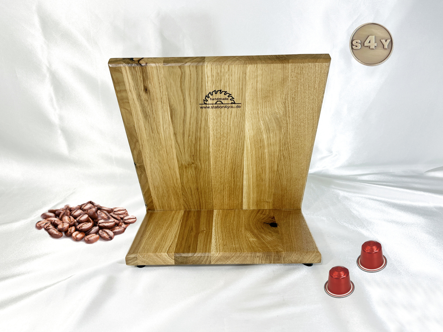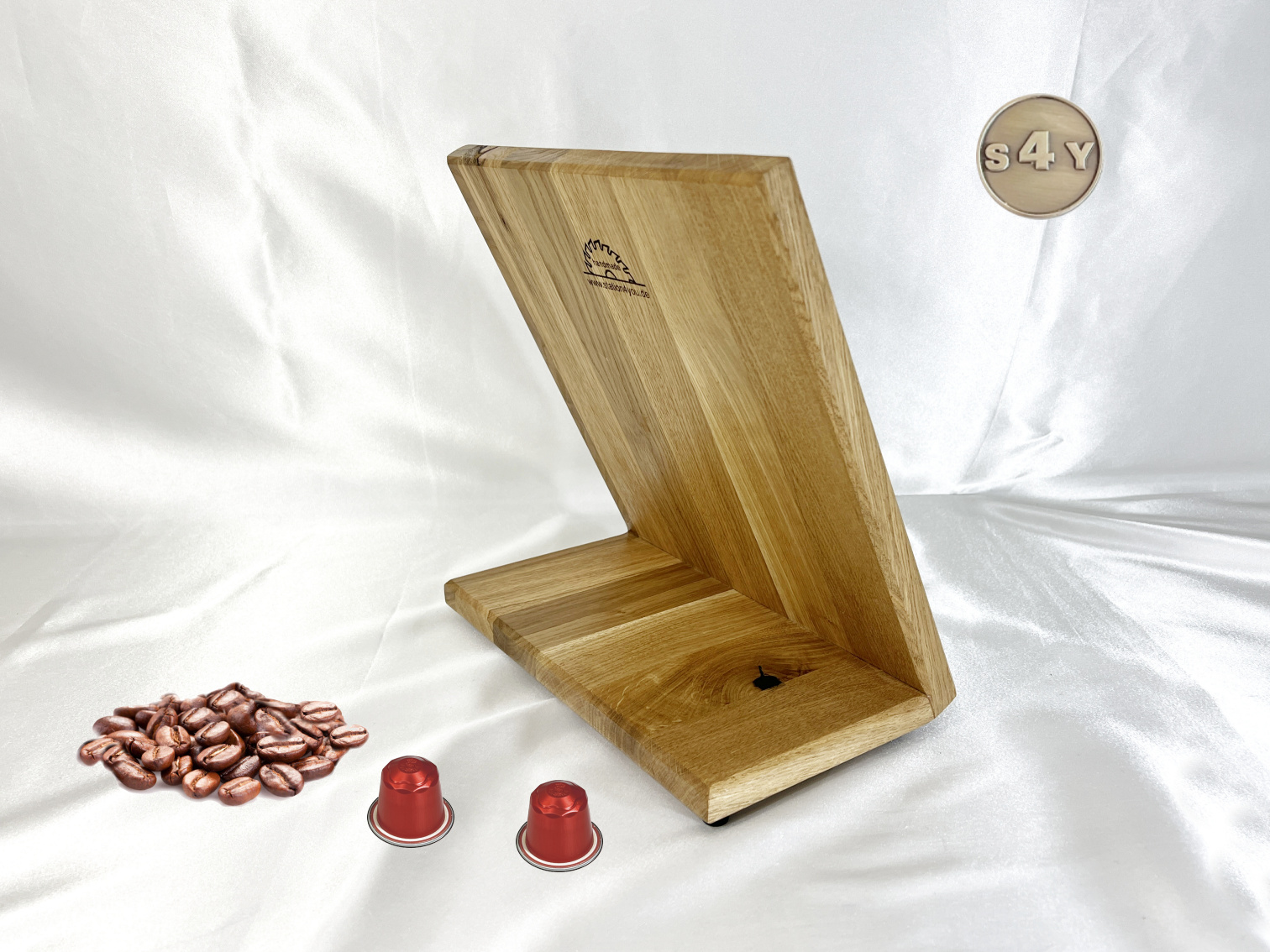 Kaffeekapselhalterung für Original Kaffeepads in Wildeiche und Metall