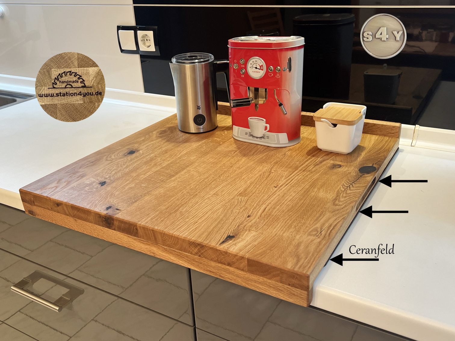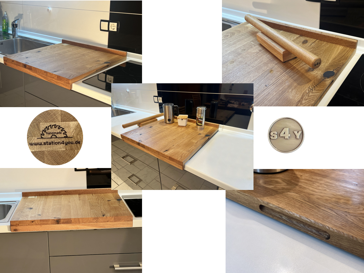 Hol dir ein echtes Naturprodukt in deine Küche. Das Backbrett, Teigbrett, Arbeitsbrett aus Massivholz ist besonders robust und belastbar. Mit der Anschlagkante gibt es kein Verrutschen auf der Arbeitsfläche mehr. Das Arbeitsbrett ist beidseitig verwendbar und lässt sich als Backbrett, Teigbrett, Nudelbrett oder Pizzabrett benutzen. Die Anschlaghöhe beträgt a. 3 cm, damit sich die Schublade darunter noch öffnen lässt. Solltest du eine schmalere Küchenarbeitsplatte haben, lass es mich wissen. Nicht nur ein Hingucker in jeder Küche, sondern vor allem kein Verrutschen mehr beim Backen. Alle Kanten der Wildeiche sind gefast und von Hand geschliffen, danach mit Leinöl veredelt. Diese besondere Mischung verhindert die Austrocknung des Holzes und versiegelt damit die Oberfläche auf natürliche Art. Bedenke, dass es sich nicht um ein in Serienfertigung hergestelltes Massenprodukt handelt, sondern um 100% Handarbeit. Hinweis: Da es sich um ein Naturprodukt handelt, ist jedes Exemplar absolut einzigartig. Unebenheiten, Farbverläufe, charismatische Astlöcher, Vertiefungen, Risse oder auch Maßdifferenzen sind möglich und erzeugen Ursprünglichkeit und machen den Charme des Massivholzes aus. Dies sind alles keine Reklamationsgründe