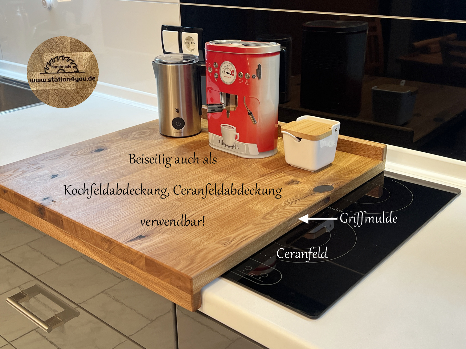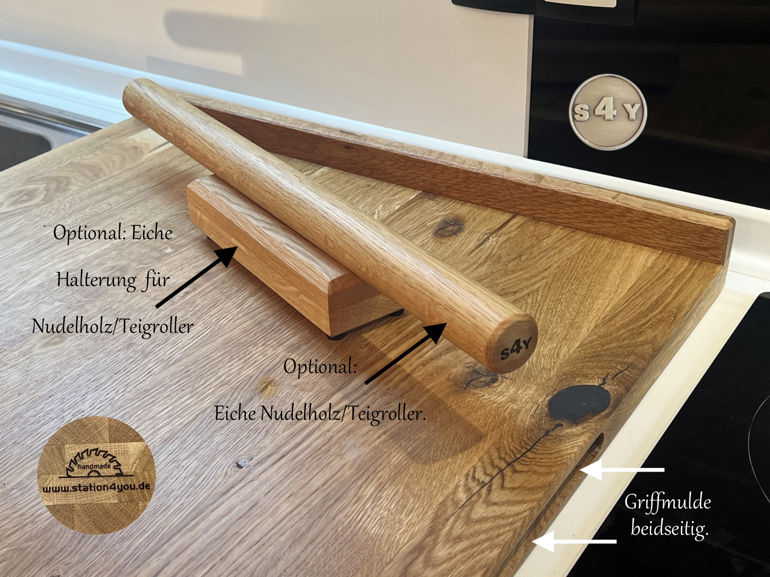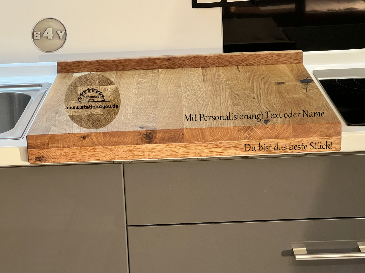 Hol dir ein echtes Naturprodukt in deine Küche. Das Backbrett, Teigbrett, Arbeitsbrett aus Massivholz ist besonders robust und belastbar. Mit der Anschlagkante gibt es kein Verrutschen auf der Arbeitsfläche mehr. Das Arbeitsbrett ist beidseitig verwendbar und lässt sich als Backbrett, Teigbrett, Nudelbrett oder Pizzabrett benutzen. Die Anschlaghöhe beträgt a. 3 cm, damit sich die Schublade darunter noch öffnen lässt. Solltest du eine schmalere Küchenarbeitsplatte haben, lass es mich wissen. Nicht nur ein Hingucker in jeder Küche, sondern vor allem kein Verrutschen mehr beim Backen. Alle Kanten der Wildeiche sind gefast und von Hand geschliffen, danach mit Leinöl veredelt. Diese besondere Mischung verhindert die Austrocknung des Holzes und versiegelt damit die Oberfläche auf natürliche Art. Bedenke, dass es sich nicht um ein in Serienfertigung hergestelltes Massenprodukt handelt, sondern um 100% Handarbeit. Hinweis: Da es sich um ein Naturprodukt handelt, ist jedes Exemplar absolut einzigartig. Unebenheiten, Farbverläufe, charismatische Astlöcher, Vertiefungen, Risse oder auch Maßdifferenzen sind möglich und erzeugen Ursprünglichkeit und machen den Charme des Massivholzes aus. Dies sind alles keine Reklamationsgründe