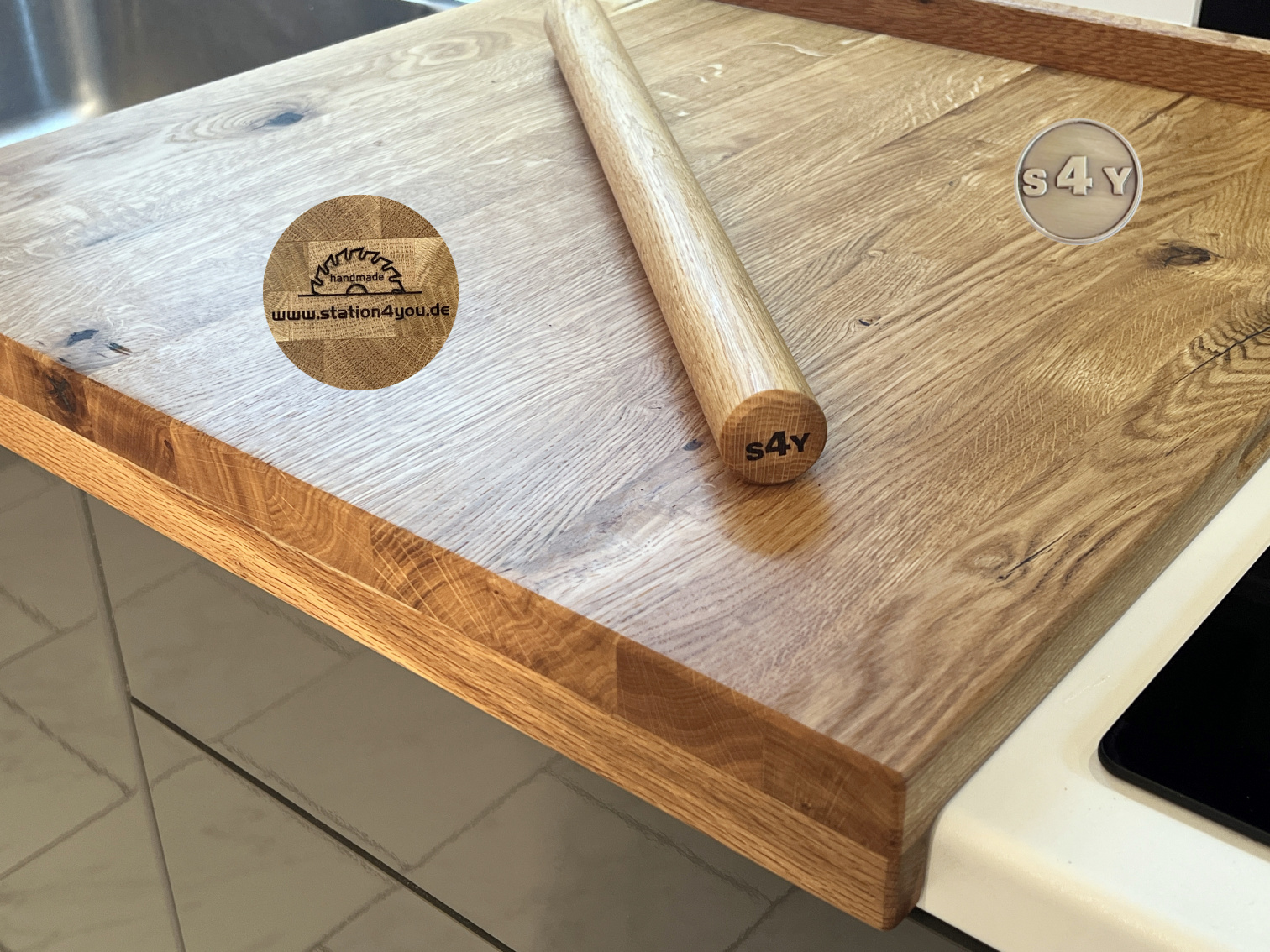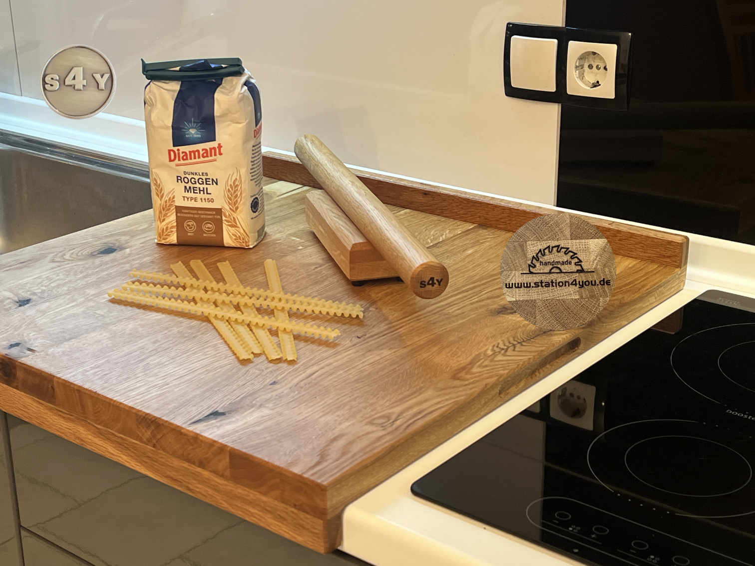 Handgemachtes gedrechseltes Nudelholz Wunschtext Pesonalisierung Teigroller Wallholz Wellholz Nudelwolker oder Halter aus Eichenholz *722 -*741